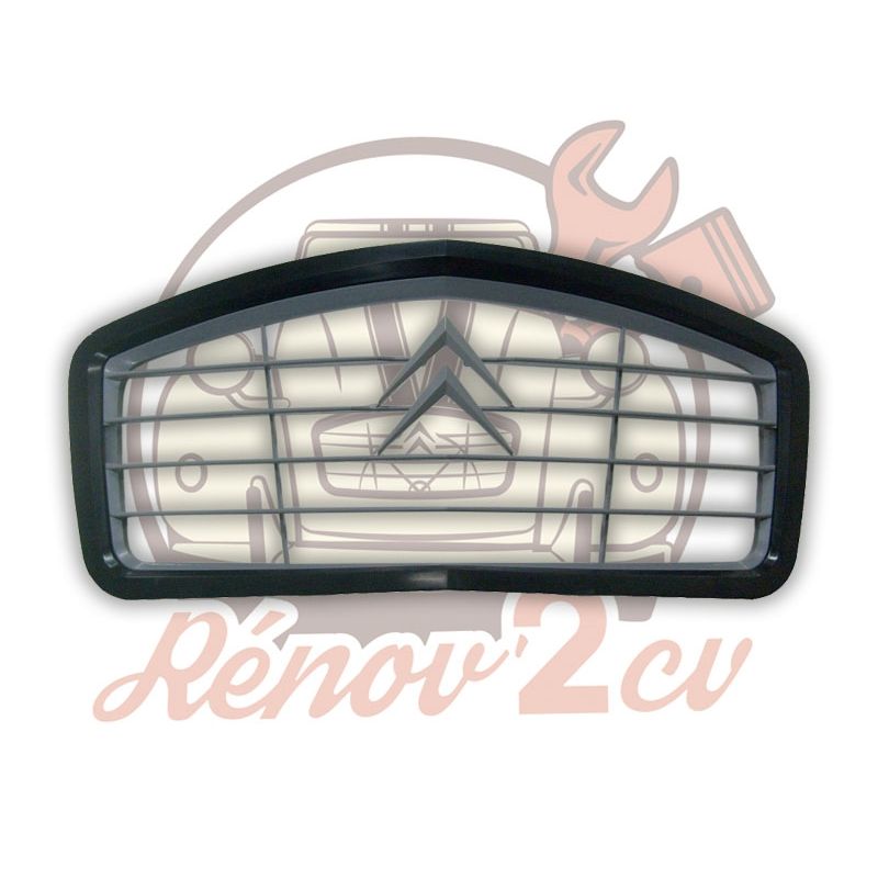 Parrilla plástica gris con borde negro y Chevrons gris.