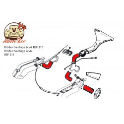 Conjunto tubos calefaccion 2cv4. Este kit incluye: 2 tubos calefaccion, 1 tubo descongelación parabrisas y 2 tubos de evacuacion aire.