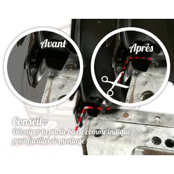 Pour 2cv ancien modèle sans trou de clignotant, mais avec trou d'évacuation air chaud. A présenter sur le véhicule avant la mise en peinture.