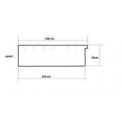 Longueur plancher 104cm; Longueur sur bordure 106cm.