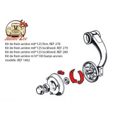 Complete rear brake kit m8x125 lockheed for both rear wheels, including : 2 wheel cylinders M8x125 Lockheed, 4 brake shoes, 1 fitting brake kit.